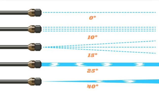 0-degree nozzle: Provides a concentrated stream for tough stains.